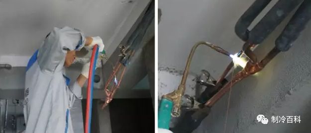 銅管焊接完畢后,在與室內(nèi)機(jī)連接之前,必須用氮?dú)鈱λ羞B接銅管進(jìn)行吹洗工作,確保銅管內(nèi)無任何灰塵、異物。